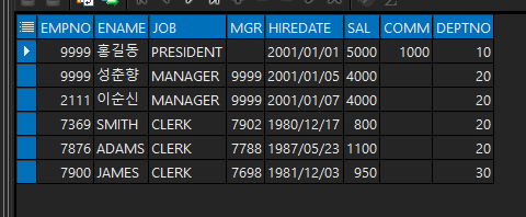 INSERT INTO CHAP10HW_EMP VALUES (7204,'TEST_USER4','SALESMAN',7201,'2016-05-31',2700,NULL,60);