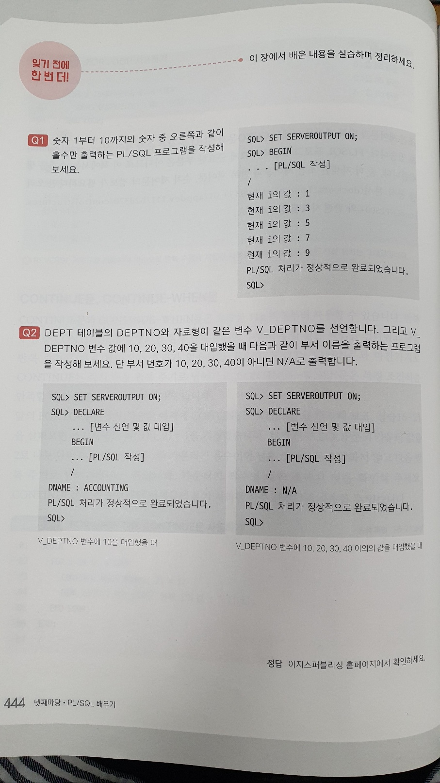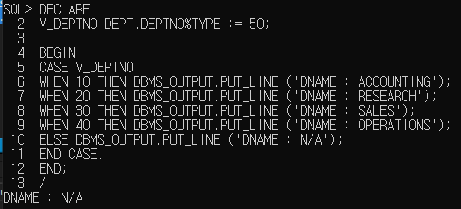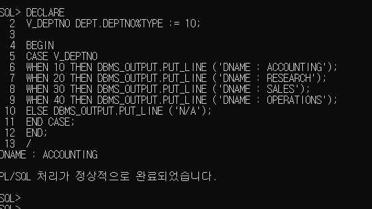 WHEN 10 THEN DBMS_OUTPUT.PUT_LINE ('DNAME : ACCOUNTING');