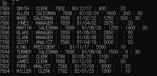 emp_arr(idx).EMPNO || ' : ' || emp_arr(idx).ENAME || ' : '|| emp_arr(idx).JOB ||