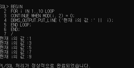 DBMS_OUTPUT.PUT_LINE ('현재 i의 값 :' || i);