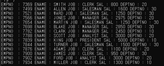 SELECT EMPNO, ENAME, JOB, SAL, DEPTNO